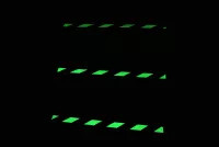 Cand am lansat pentru prima data banda (fotoluminescenta) fosforescenta, am crezut ca aceasta noutate va avea doar un interes limitat. Cat de mult ne-am inselat! Acum este un produs foarte popular. Pentru a face banda noastra fosforescenta foarte vizibila si eficienta, aceasta este acoperita cu doua niveluri diferite de strat fotoluminescent.